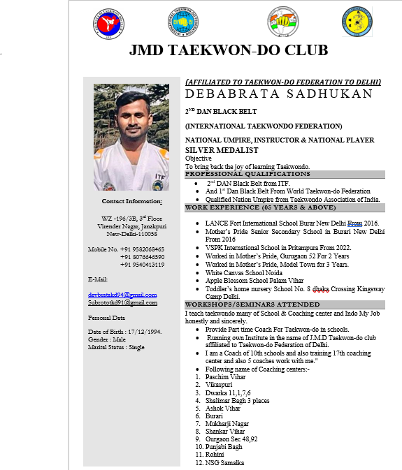 • Our JMD Taekwon-do club achieved in 29 Delhi State Taekwon-do Championship November 2017. Was 3rd Position.